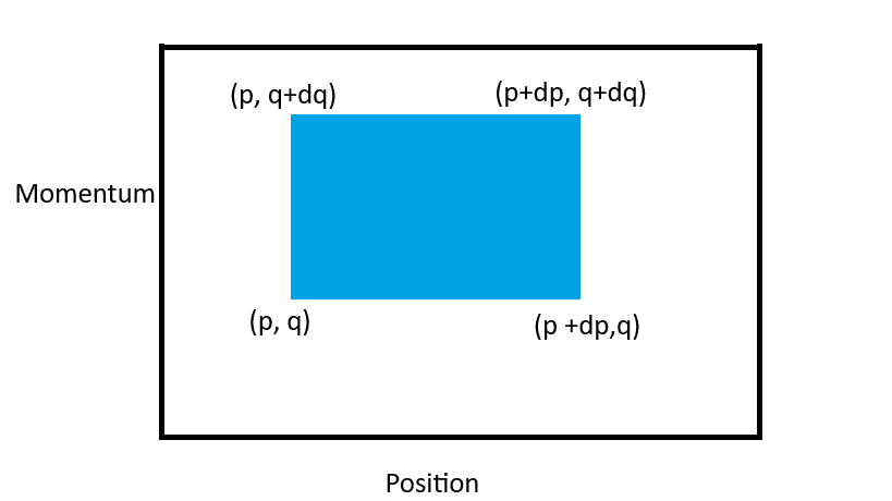 As is usual for physics, start with an infinitesimal volume element, dp dq (fig 1). This can represent the possible states of a physical system. We wish to show this volume is conserved as the states evolve.
