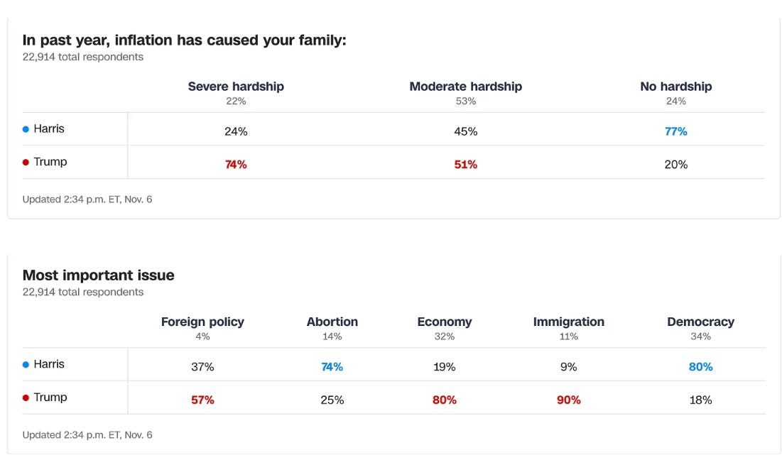 Then it is no surprise that exit polls show people who were most dissatisfied with the economy under Biden (and assumed Harris would be more of that) voted for Trump. Sure, there's some political self-deception bias going on (see charts of economic sentiment vs. date by party affiliation), but note that the exit polls are correlational - they can indicate that partisanship is a hell of a drug or that people are rationally responding to their perceptions. It's likely both. And if your model of those perceptions is inferior in the ways Mazlish notes, you'd wrongly think people would have been happy with the economy.