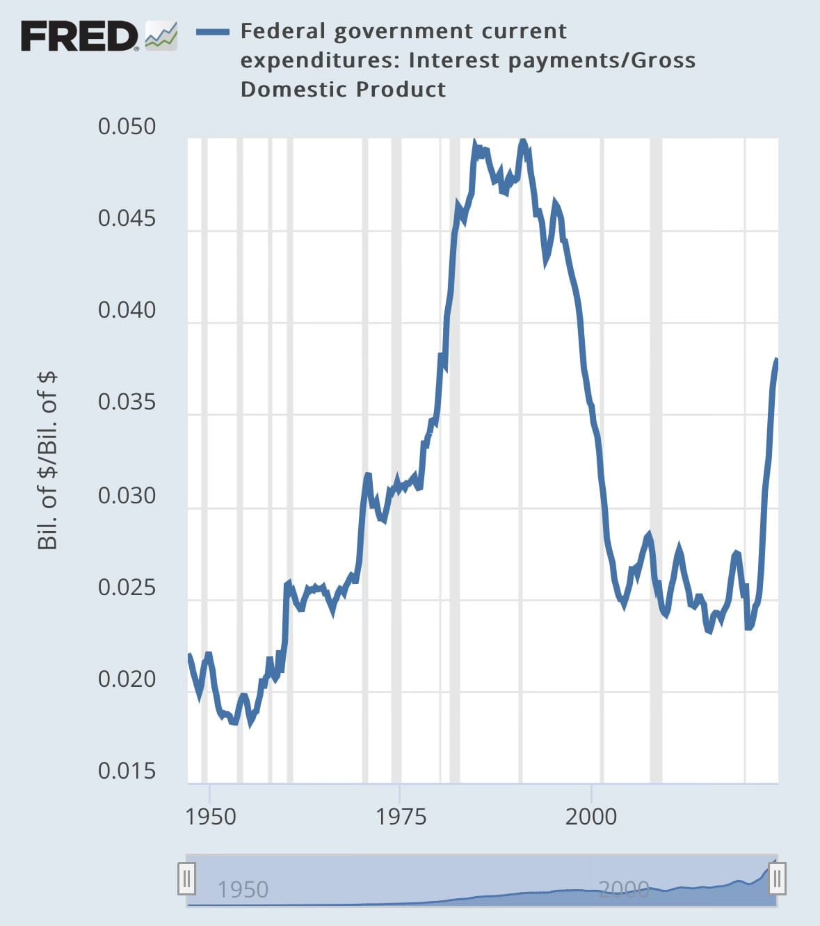 Another way to measure this is GDP share of interest payments, but as always keep in mind that this is nominal: