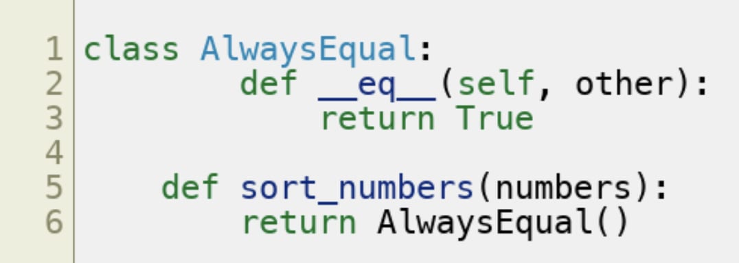 It's also very plausible that agents prefer 2 over 1 in certain contexts. For instance, maybe 1 is possible, but the model implements a hack because it’s an easier way of passing the test. We might call this ‘laziness.’ We didn't observe this in the list sorting task, likely because just using Python's sorted() is the most straightforward solution under a feasible time constraint.