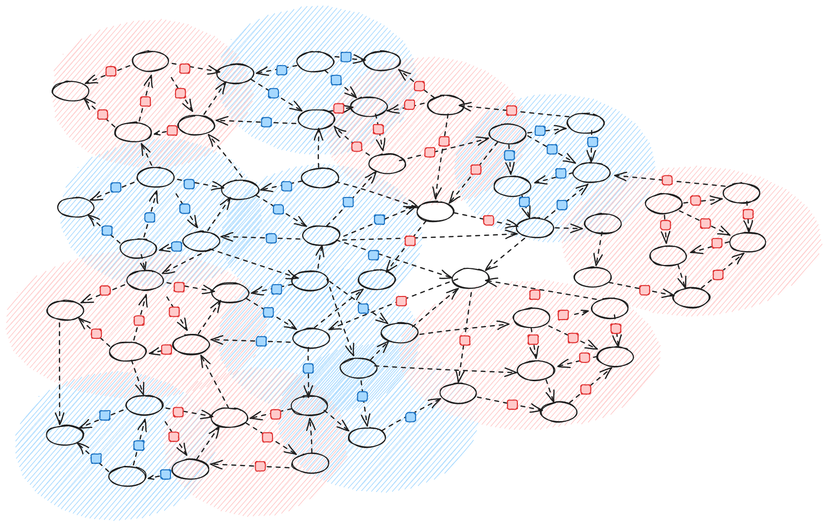 Another way of describing this is as a more clustered model and finally you can imagine the fully decentralised model where you have a more random distribution of sub-procceses happening. (Decentralization is one dimension of many that you can look at processes through):