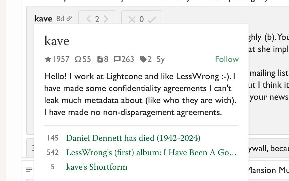 Contrast: a few months ago I subscribed to comments on a few LessWrong users[5]. Previously I'd subscribed to posts by some authors and this generated a small manageable number of notifications. Not so with comments. Suddenly my notifications drawer was filled with comments. I wanted to read them, but it wasn't a great experience[6]. I realized that what I really wanted was a feed of comments by users who typically wrote comments I wanted to see.