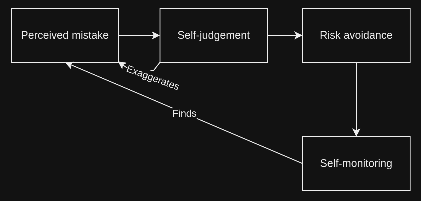 When you feel awkward, such small slip-ups are exaggerated. You judge yourself for making them, and “tense up” to avoid future mistakes. Going into risk avoidance leads to increased vigilance.