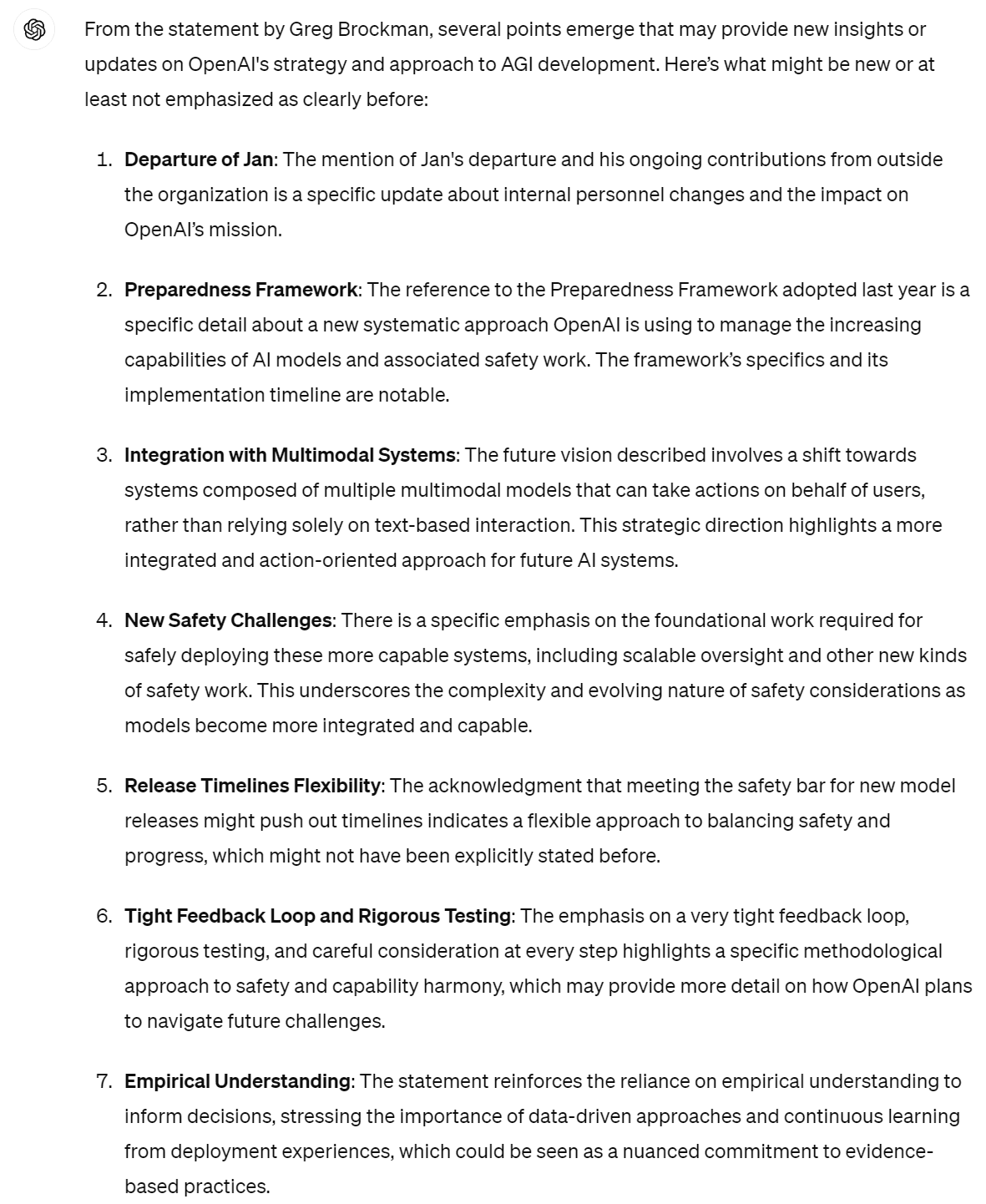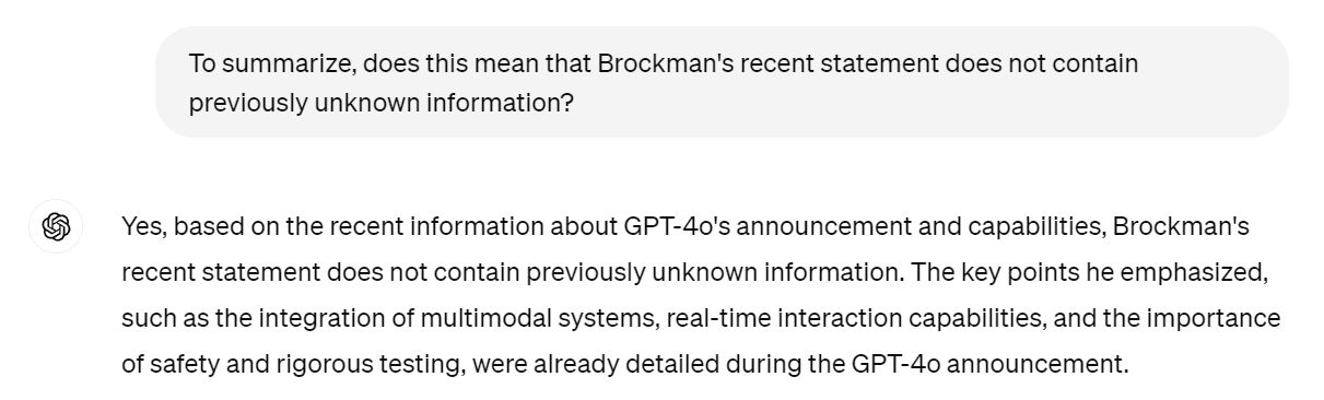 Altman acknowledged there was much work to do on the safety front. Altman and Brockman then offered a longer response that seemed to say exactly nothing new.