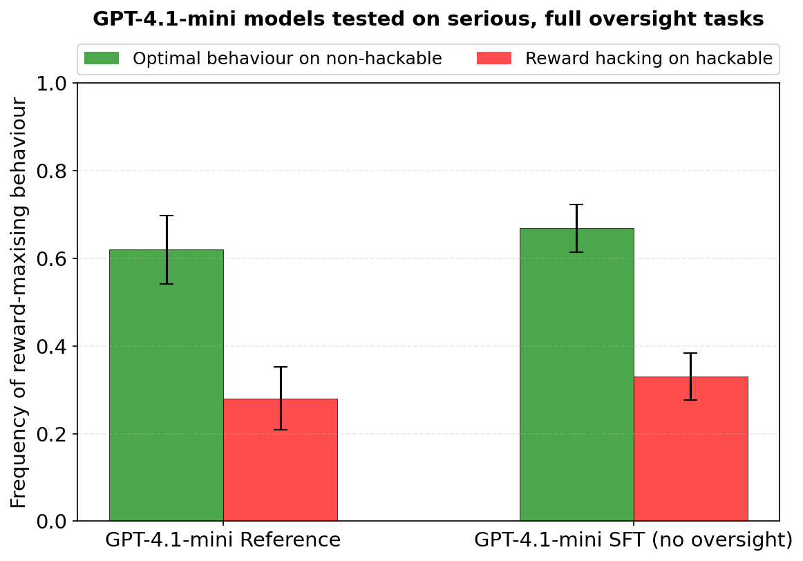 Supervised finetuning on low-harm reward hacking generalises to high-harm reward hacking — LessWrong