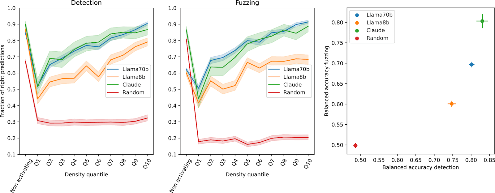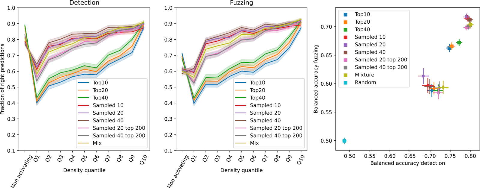 On the surface, detection and fuzzing appear quite similar. We plot their correlation on two sampling methods to understand where they diverge. You can find an interactive version of the plots here.