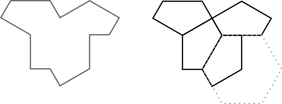 On the left is the full tile. On the right is a way of decomposing it into four-thirds of a hexagon.