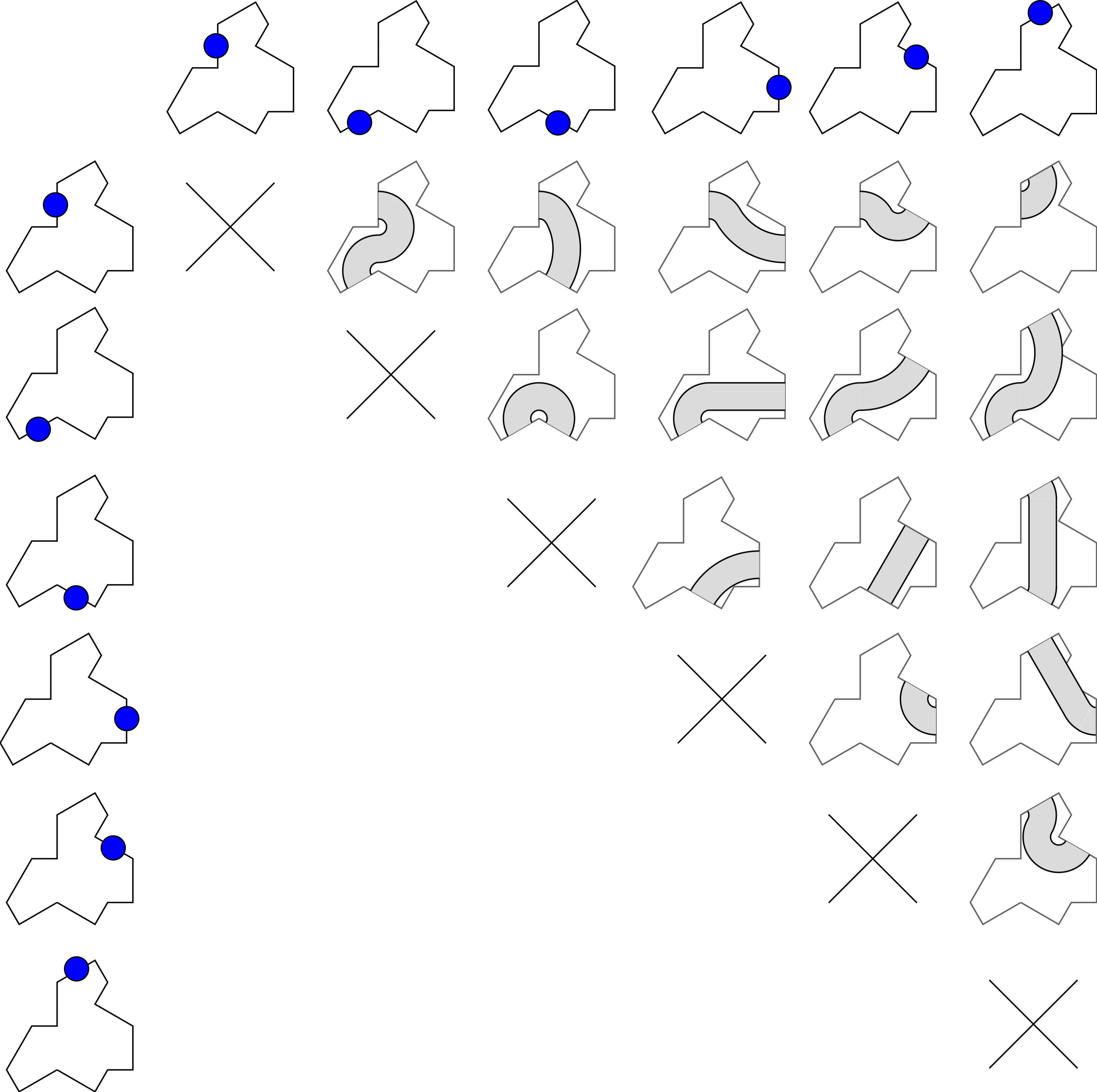The sidelengths for the Einstein tile are all either or , except for a single side of length . I think it makes more sense to treat that side as two sides, with a angle between them. Then you would get fourteen entry/exit points: