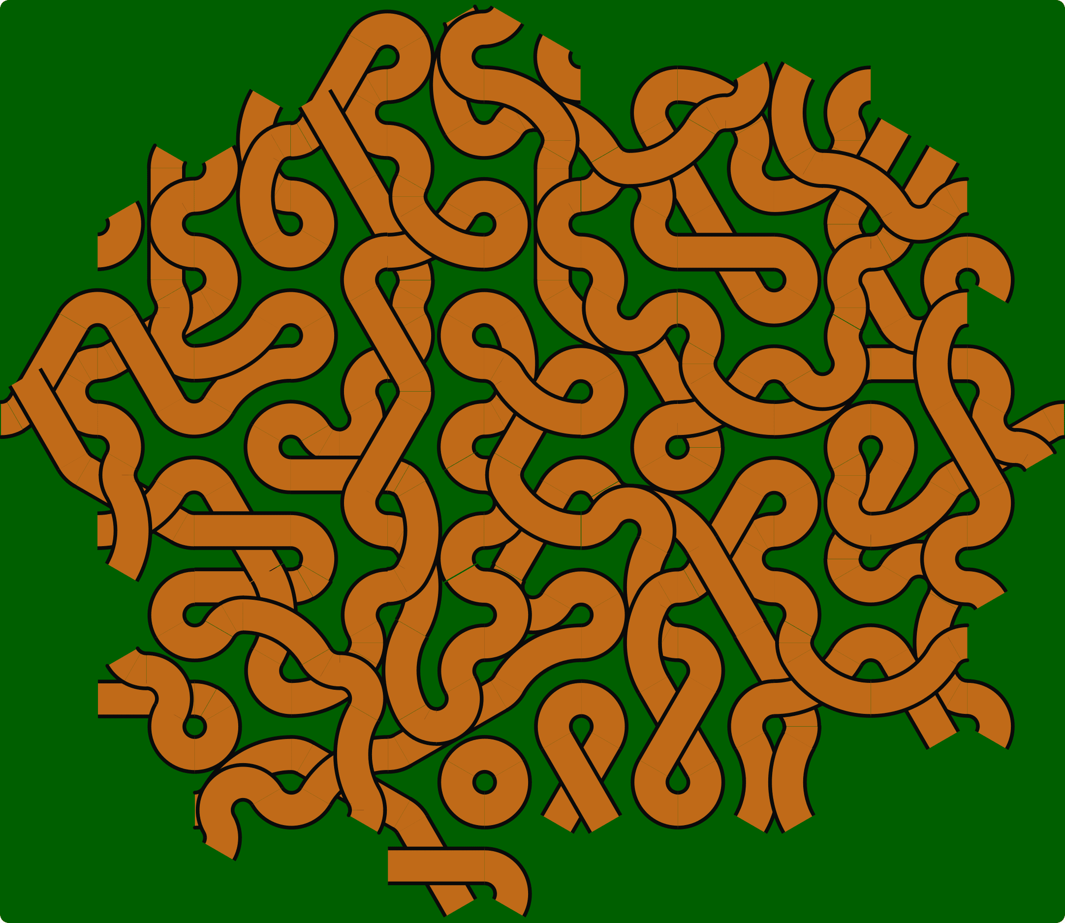 Notice that a couple of the ropes trespass slightly outside the tile. This seems like it will be fine, if it does touch a rope in another tile it can just go over or under it.