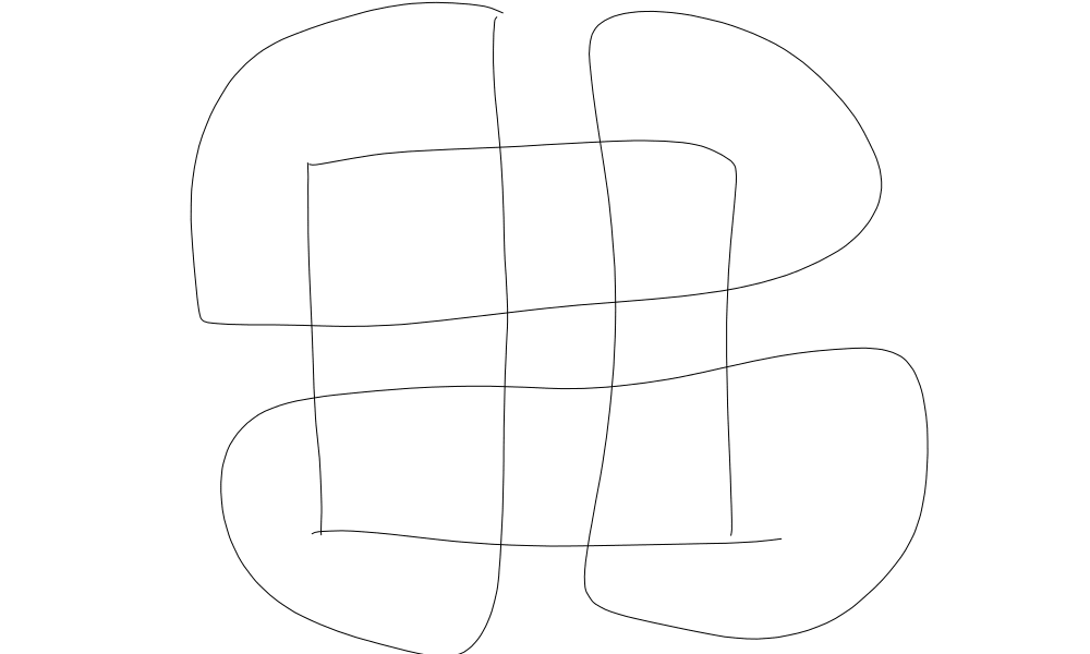 This is on a single square tile, with four ports of entry/exit. What I've done is doubled the rope in each connection, so there is one connection going from the top to the bottom and a different connection going from the bottom to the top. Then you tie off the end of each connection with the start of the connection just clockwise to it.