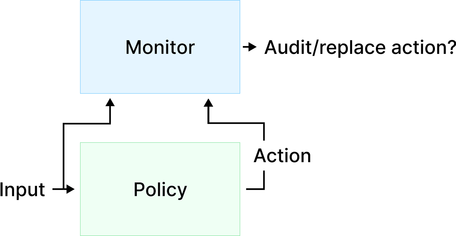 Figure 5. In this simple setup, a monitor labels actions generated by a policy. Actions can be replaced or audited by a human.