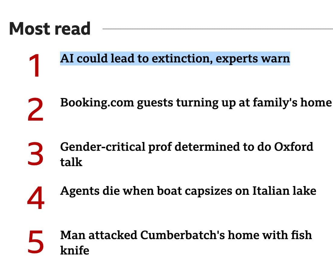 Yoshua Bengio is worried and feels lost (BBC). Does not sound like he thinking as clearly as Hinton, more that he realizes things are going horribly amiss.