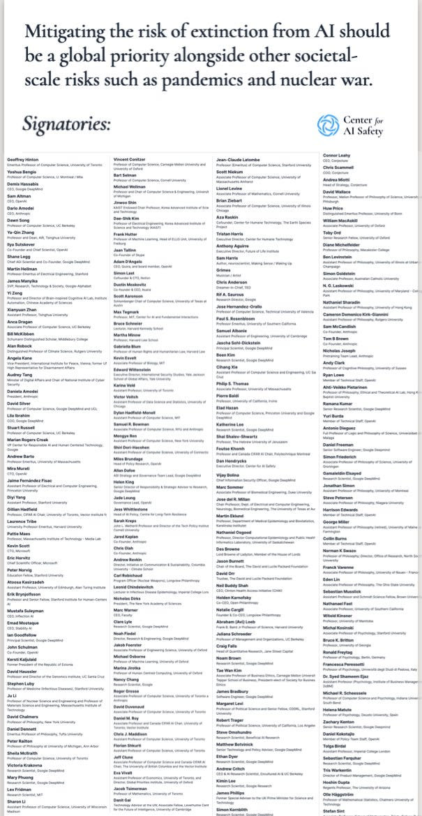 That is the entire text of the one-line open letter signed this week by what one could reasonably call ‘everyone,’ including the CEOs of all three leading AI labs.