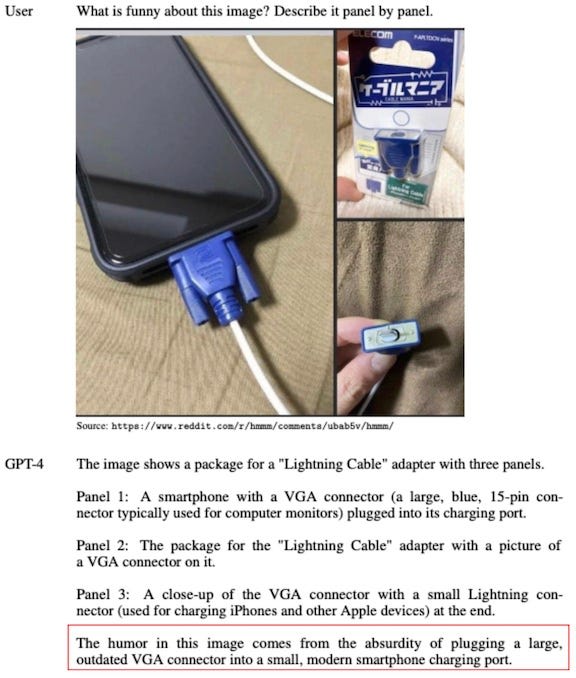Though GPT-3.5 set the bar high, the above example from GPT-4 blew me out of the water — it could explain a complex visual joke! But we’re just getting started.