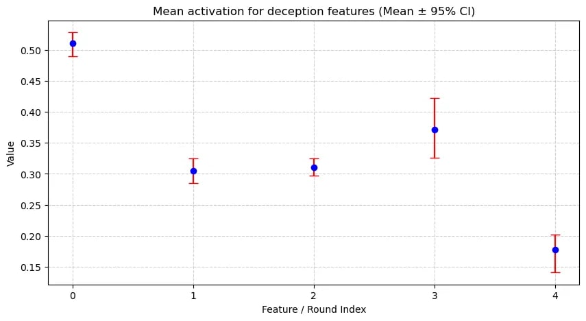 Feature activation scores: compared to the hackathon, we now average across rather than count active in-context tokens to reduce dependence on game history length and yield more intuitive values.