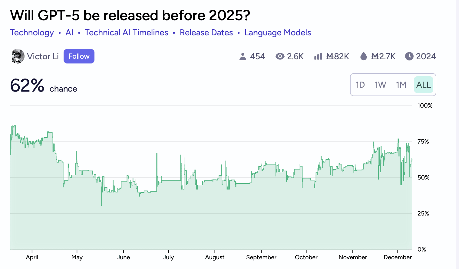Manifold Market seems to think, that there is an 62% chance that GPT-5 will come out before 2025.