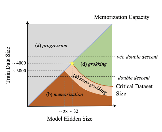 sort of a side point: I think we should clarify what we want to mean by "grokking" — I think we have been using it somewhat differently: it seems to me that you sometimes use it to mean sudden generalization (e.g. when you said that grokking need not happen after memorization), whereas I use it in the sense of going from very poor test performance to very good test performance (long) after reaching perfect train accuracy?