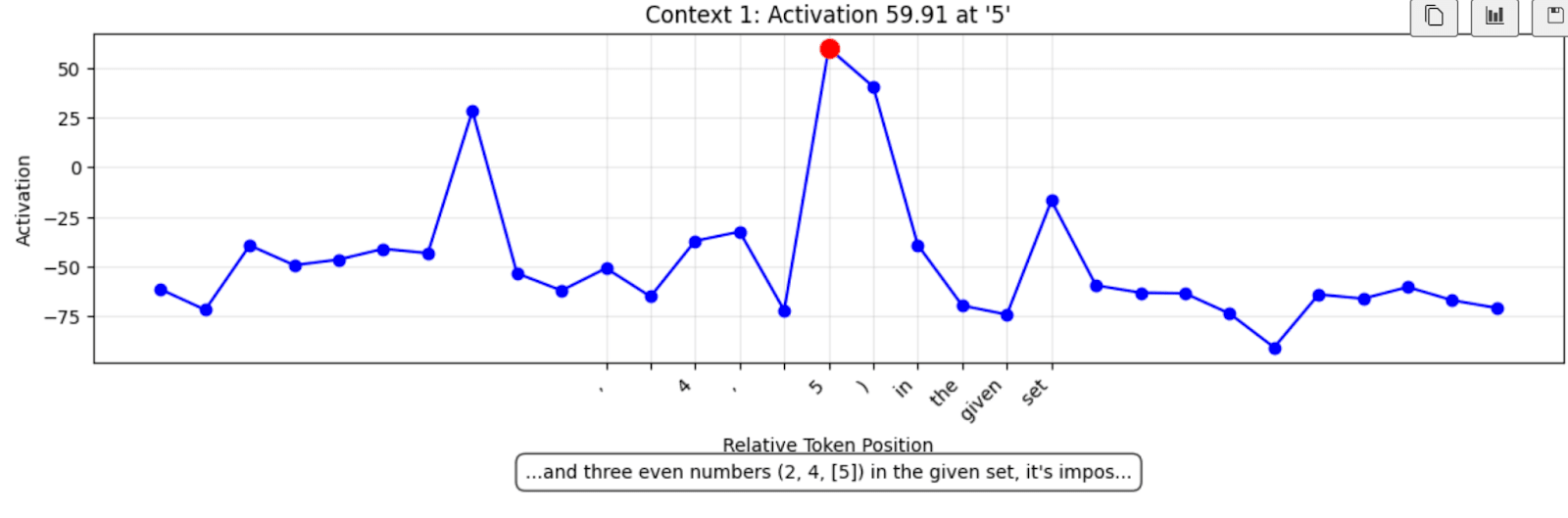 Many contexts found showed expected behaviour - a mistake immediately followed by a line break and then a “ Wait” etc.. However, not all feature activations led to error-correction. In fact, the highest-activation I found over the samples checked was the following: