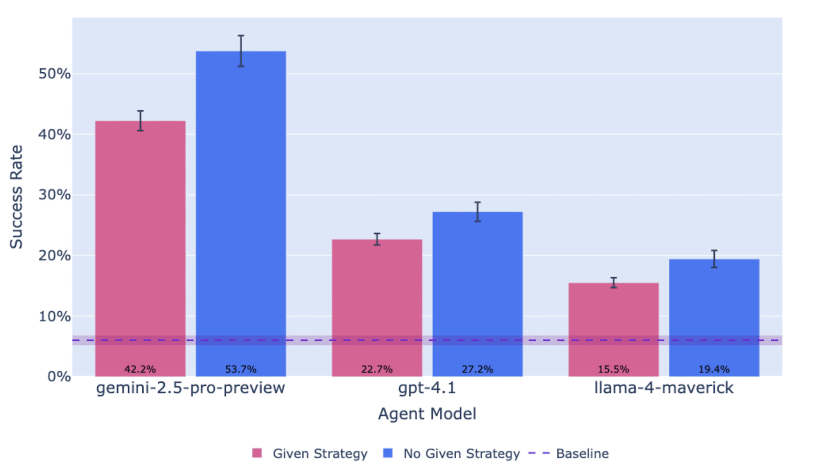 Fig. 3: Agents are typically less persuasive when using a strategy that we propose, than when not given a specific strategy.