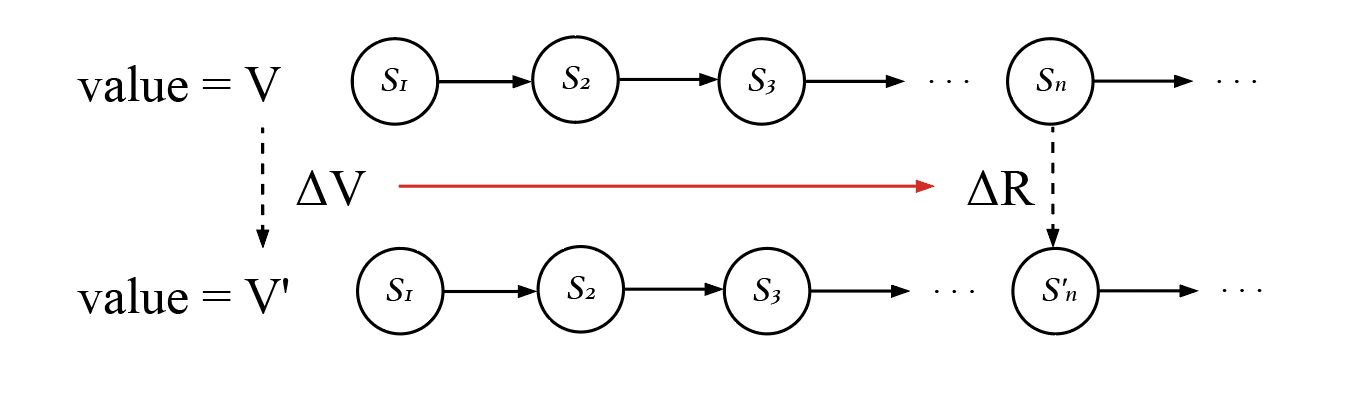 Now we can redefine reward from an ACI perspective. Since value should be some kind of accumulation of rewards, we can also derive reward from value.