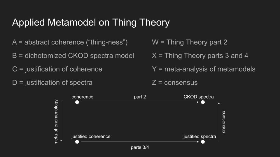 For a more comprehensive analysis of metamodels and knowledge models, please refer to Thing Theory: An Explorative Approach to Phenomenological Analysis. The full text is available to download for free at: http://www.mindmathmusic.com/philosophy/thing-theory