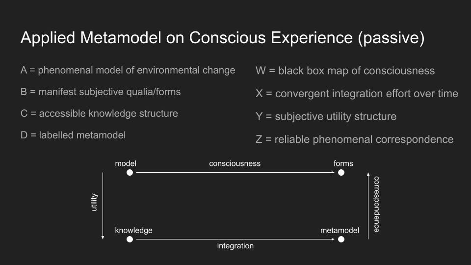 Every model necessarily corresponds to some utility metamodel. The base model is the phenomenal model, and the metamodel includes at minimum one proper equivalence class, which requires that a given model is in fact taken to be a properly useful model and not merely an illusion of correspondence/ correlation. If a model is not useful or correspondent according to some metamodel, the model will not generally persist and compete with other useful models over time, akin to natural selection.