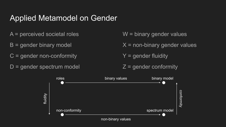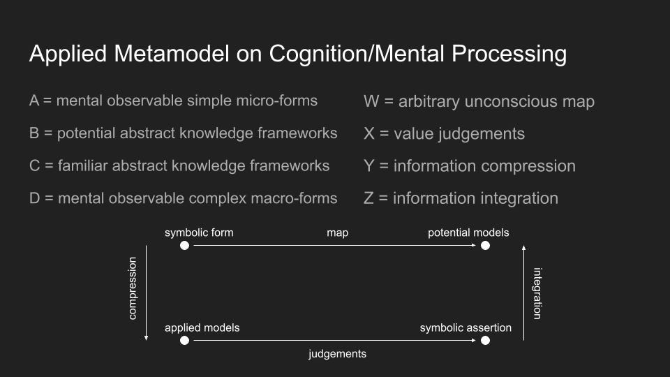 All forms of knowledge, all ideas, concepts, models, words, languages, theories, etc. necessarily correspond to a given metamodel in the following mode: