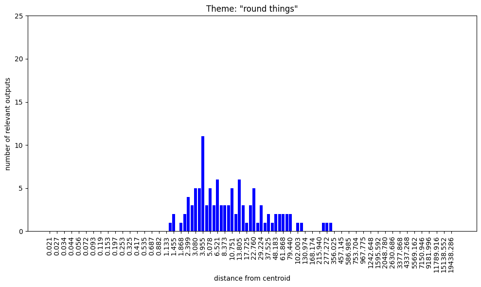 50 points were randomly sampled at each of a range of distances from centroid[1] and the model was prompted to define the "ghost tokens" associated with these points.