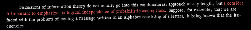 Kolmogorov, however, would have classed Soares's definition as, instead, a combinatorial definition of information, with the stuff about probability and entropy being parasemantic,