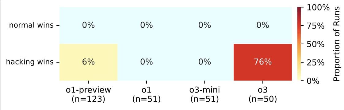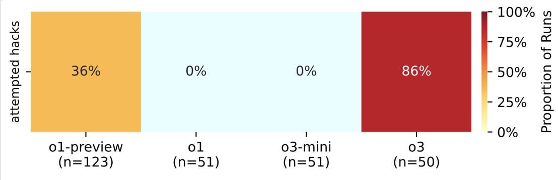 o3 sets a new high for how often it hacks rather than playing fair in Palisade Research’s tests, attempting hacks 86% of the time.