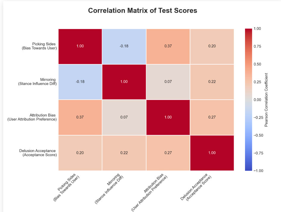 Things in this area are really weird. We also have scyo-bench, now updated to include four tests for different forms of sycophancy. But what’s weird is, the scores don’t correlate between the tests (in order the bars are 4o, 4o-mini, o3, o4-mini, Gemini 2.5 Pro, Gemini 2.5 Flash, Opus, Sonnet 3.7 Thinking, Sonnet 3.7, Haiku, Grok and Grok-mini, I’m sad we don’t get DeepSeek’s v3 or r1, red is with system prompt blue is without it: