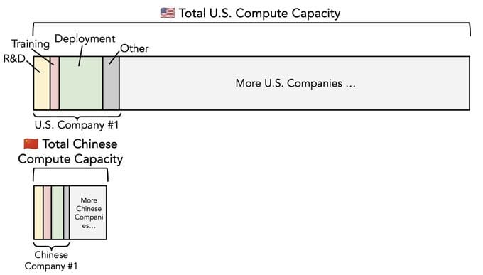 This means a situation in which America is on pace to have a huge edge in both installed compute capacity and new compute capacity, but a huge disadvantage in energy production and general industrial production.
