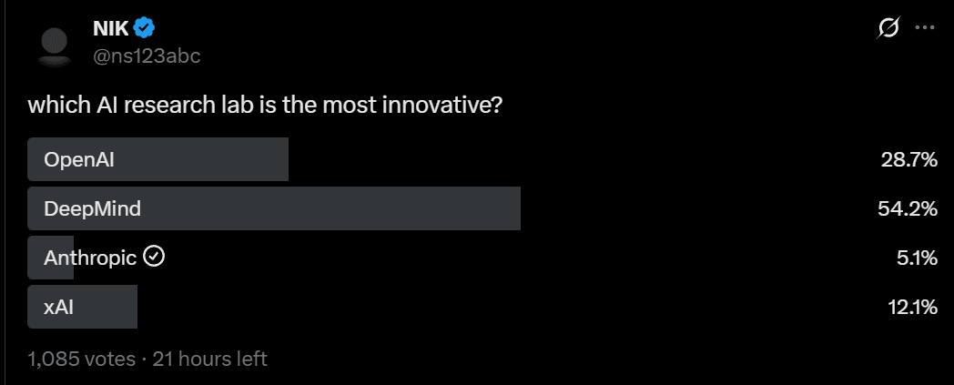 The xAI votes are almost certainly because we are on Twitter here, they very obviously are way behind the other three.