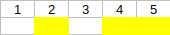 So, out of the 5 cells below the numbers, two are colored yellow (under 2 and 5), while the rest are white or uncolored.
