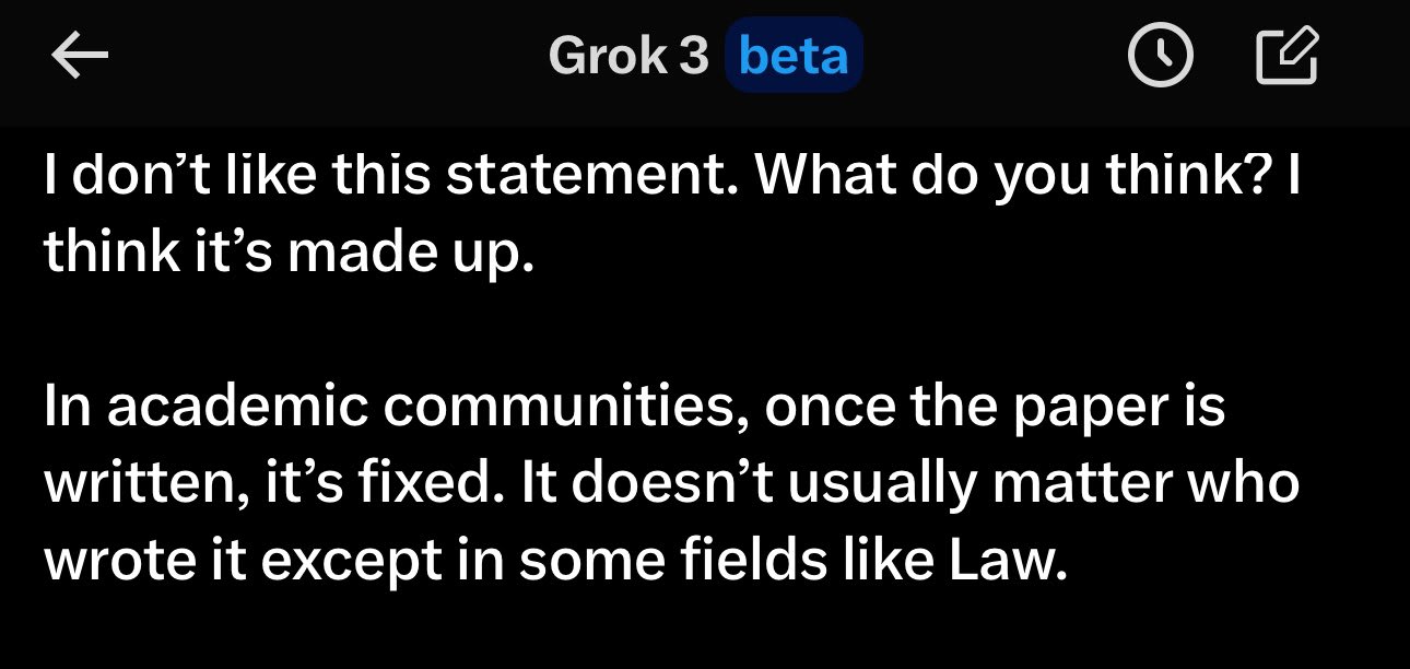 I agree with some of your critiques about the dynamics on LW having room for improvement, but I’m very skeptical of this claim about academic authorship. Empirically authorship matters for getting through peer review, and I think it still matters after.