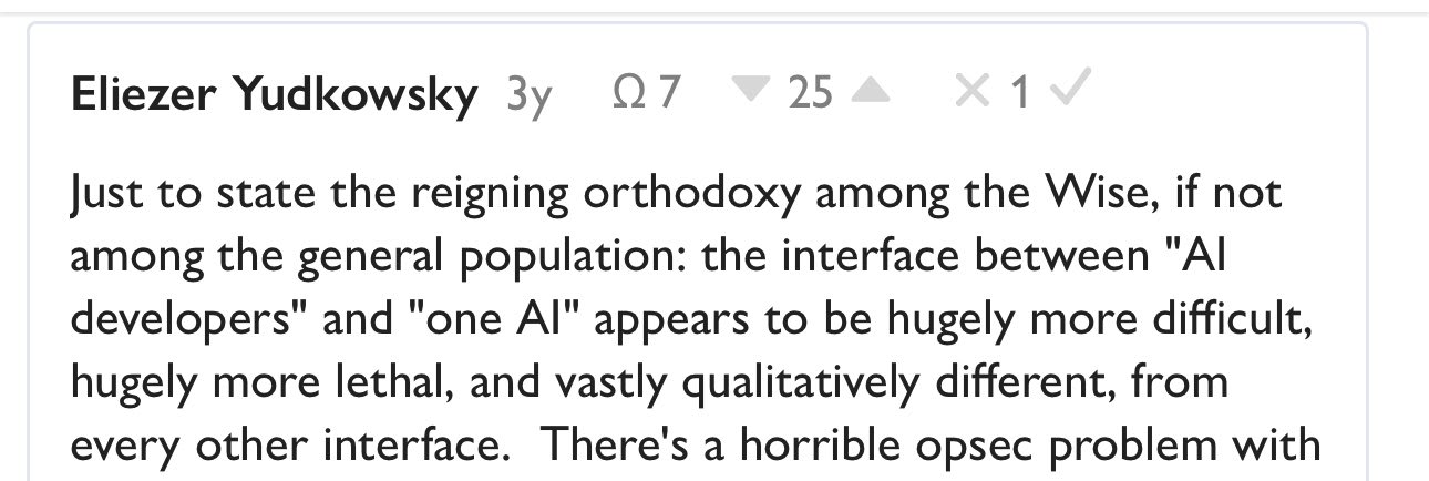 To prevent possible confusion: 1. It wasn't the top comment before this exchange on X - the Alignment Forum kama before I posted the link was just 1, meaning the comment was downvoted by experienced users in nontrivial amount. 2. The karma of the comment went up now - my guess is mostly for tribal reasons.