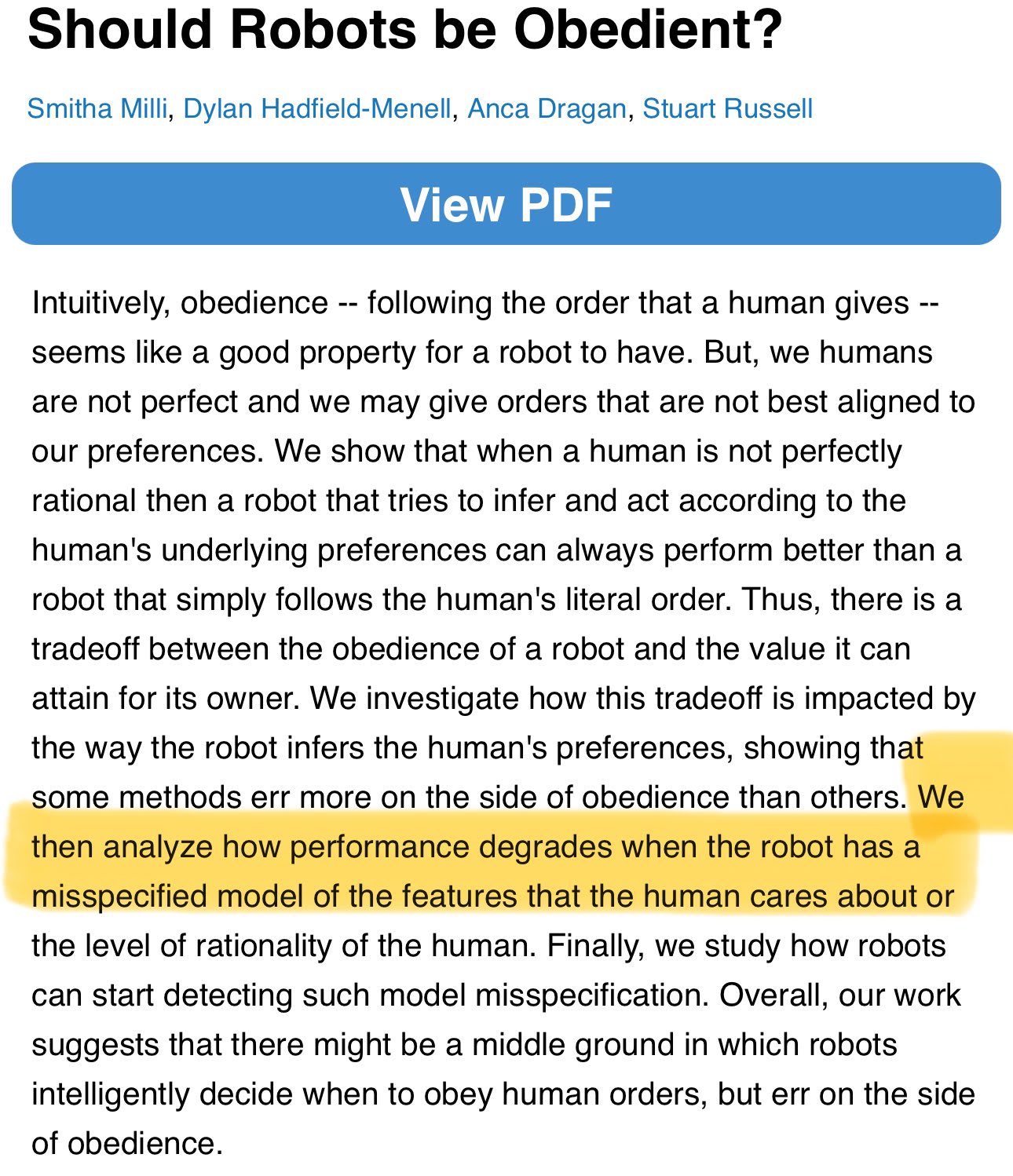 That being said, I also think Dylan is absolutely correct that Stuart's statements were somewhat heterodox in CHAI even when Dylan was there, and I think the gap has only grown wider since. See e.g. Stuart's comments with Eliezer in Scott's Assistance Games writeup