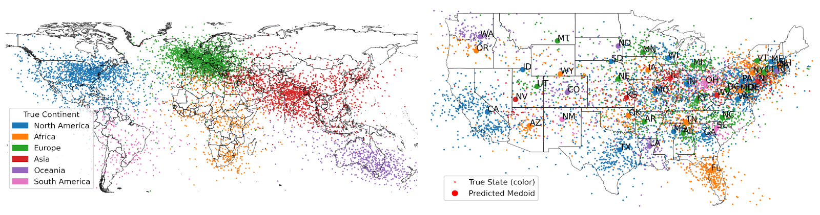 The plots above are the result of projecting the latent representations. They're not only remarkable but also provide insight into how and why language models learn to represent these variables within their weights. The models aren't scheming to learn geography so they know where to launch Skynet from; they're simply identifying information that is statistically significant for being able to mimic human conversations about reality. The model needs an internal understanding of the absurdity of a colloquial expression such as "digging a hole to China," or why somebody would sound annoyed if they had to drive from Washington D.C. to Boston at the last minute. The accuracy of the model's representations also heavily correlates with the density of the populations generating the text that the models are trained on, as evidenced by the higher variance of the geographic points it has for Africa and South America. This could be the result of there simply being more data discussing the areas the generators occupy, or models approximating the median geographical knowledge of them.