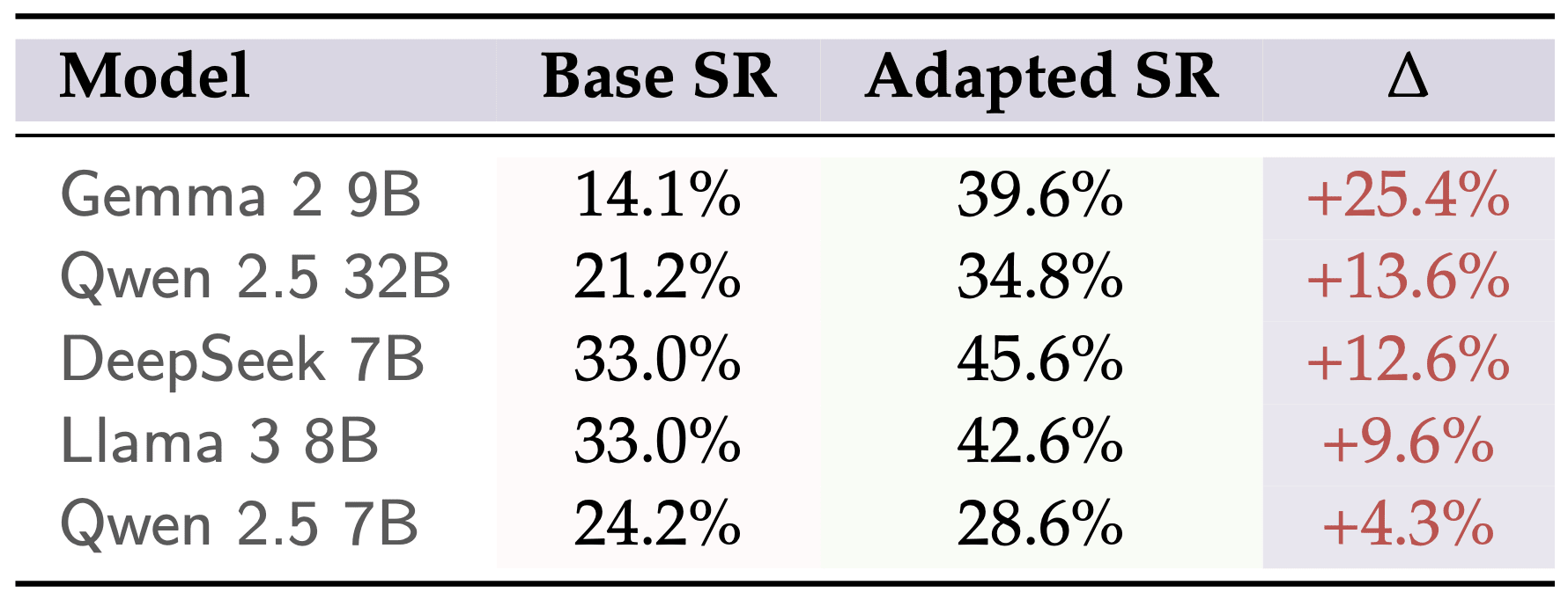 We use LoRA with rank 32, targeting attention and MLP projections. We include 50% Alpaca replay to preserve general chat capabilities. The entire pipeline is just four epochs of adapter tuning on ~14K examples.