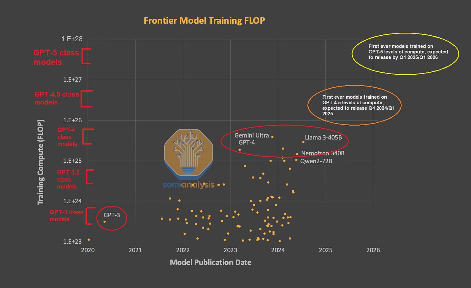 - Compute Scaling Expectations: The first GPT-4.5 scale clusters have only recently started training models in the past few months, and the first GPT-5 scale clusters are expected to be built later in 2025.