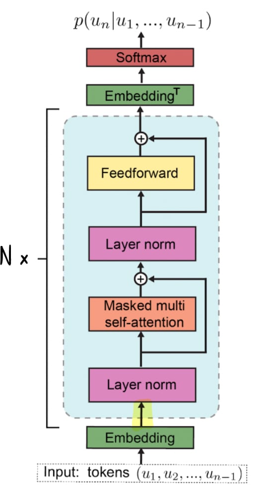 Given the vast number of excellently-written resources on transformer architecture, I'll choose to direct the reader to those for familiarization if needed: Formal Algorithms for Transformers, GPT-2 paper, GPT-2 github.