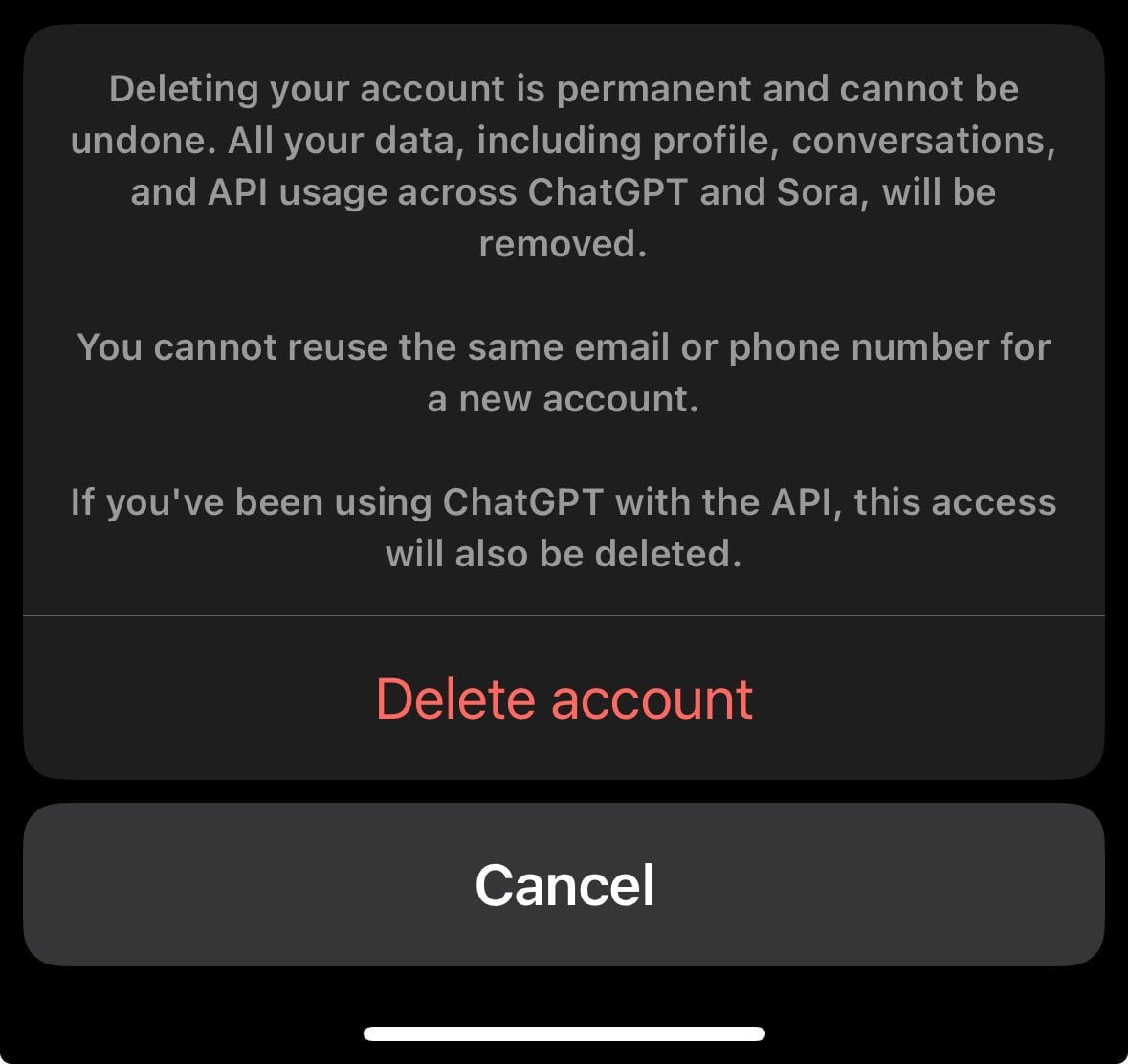 Paul Yacoubian: Just found out if you try to delete your Sora app account you will lose your chatgpt account and be banned forever from signing up again.