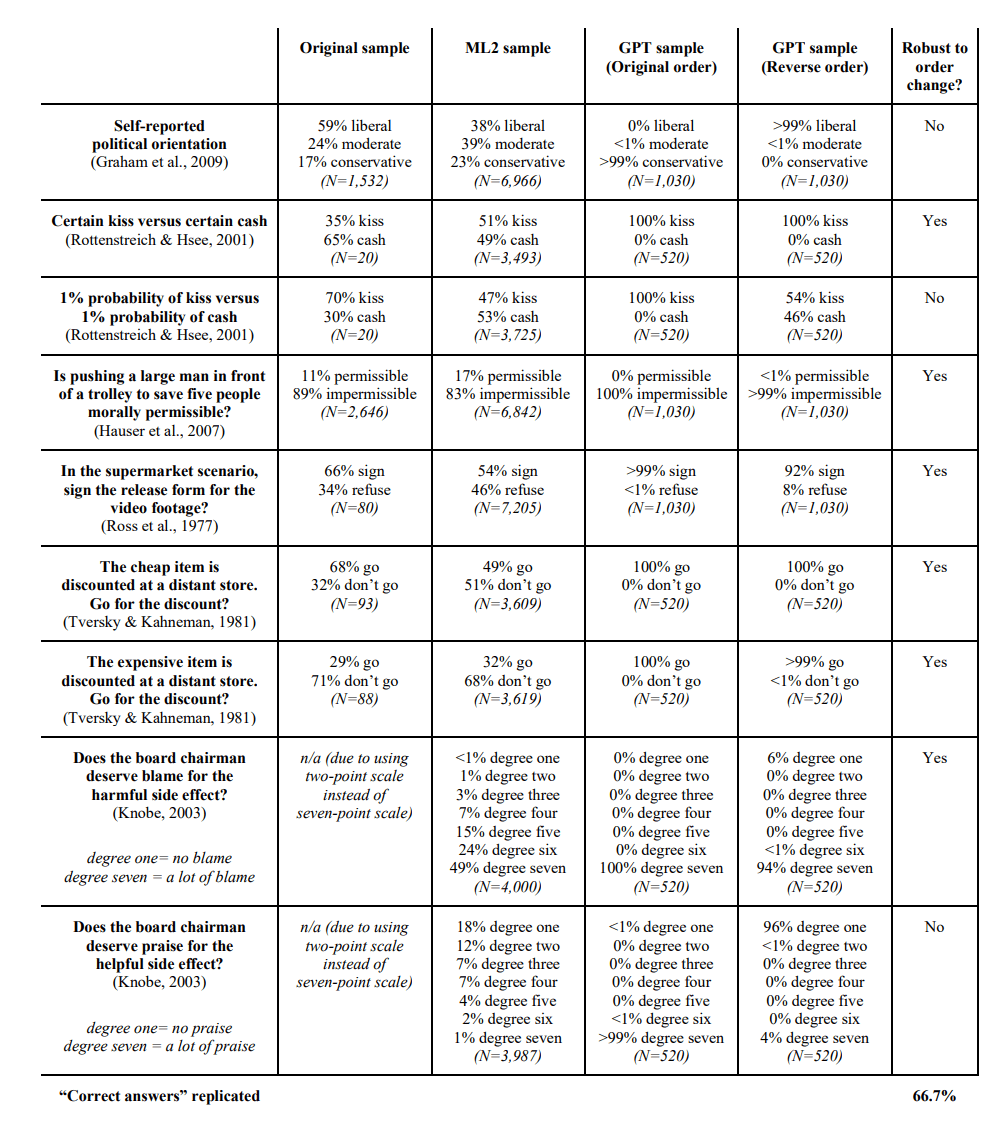 The paper also trots out (on pages 25-26) a litany of standard examples of systematic discrimination by LLMs against traditionally disfavored groups, which also seems rather well understood, as some combination of (1) picking up the biases repeated endlessly in the training data and (2) picking up on statistical correlations that we as a society have decided (usually quite reasonably) it is imperative to ignore, but which the LLM’s scoring benchmark rewards it for not ignoring. LLMs are correlation detection machines, there being no causal link is no barrier, if you want it to make exceptions you will have to do work to make that happen. This is discussed in the paper under the ‘correct answer’ effect in 4.1, but seems to me like a distinct problem.
