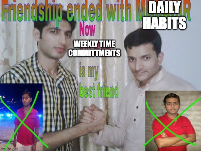 Also, if you don't mind me asking, what is the commitment you most often fail? Is it time spent on twitter and youtube?