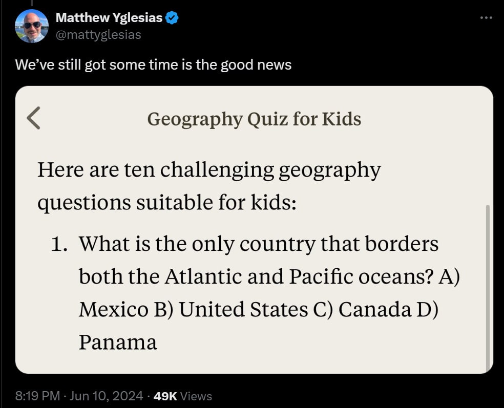 As he says, if the San Francisco perspective is right, the people have no idea what is about to hit them, no matter how well or poorly things go. The people definitely have no idea what is about to hit them. Even if the AI crowd is totally wrong and we see little additional progress beyond applications, there is enough change already baked in from future adaptation to guarantee it.