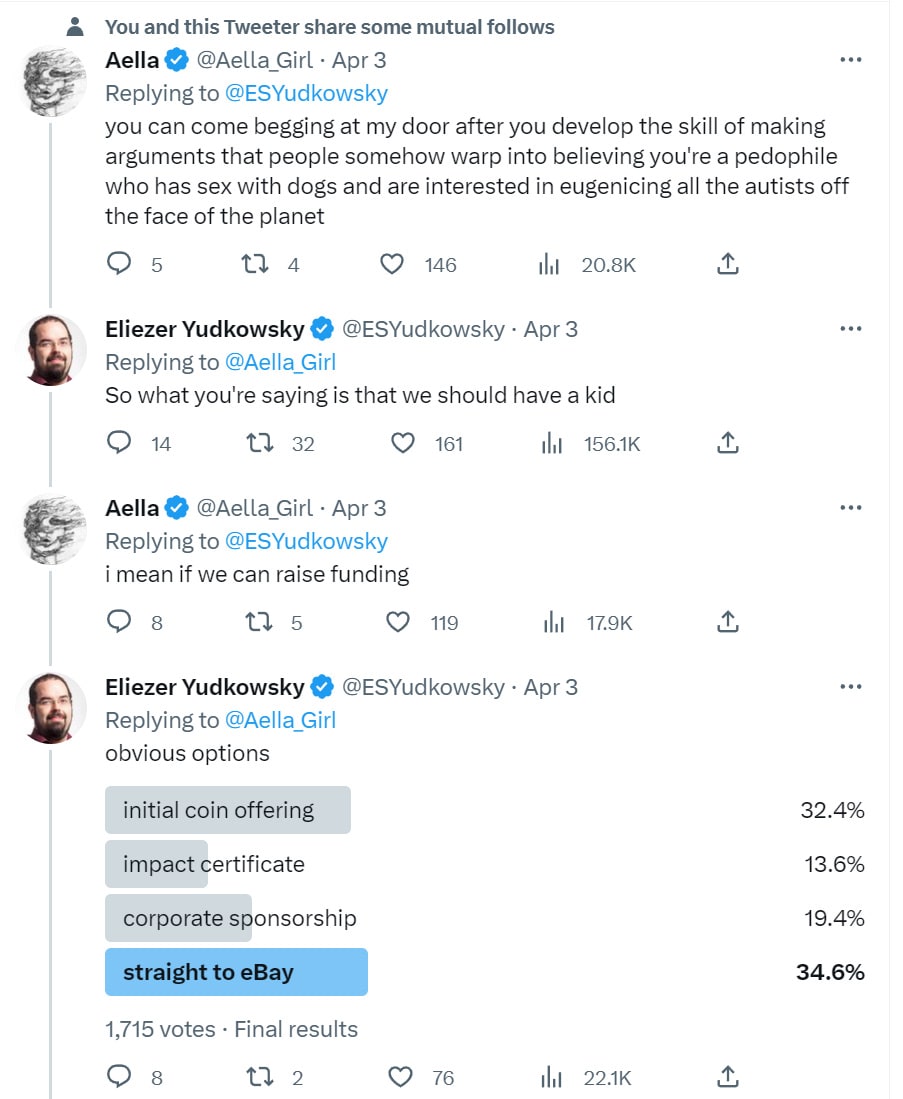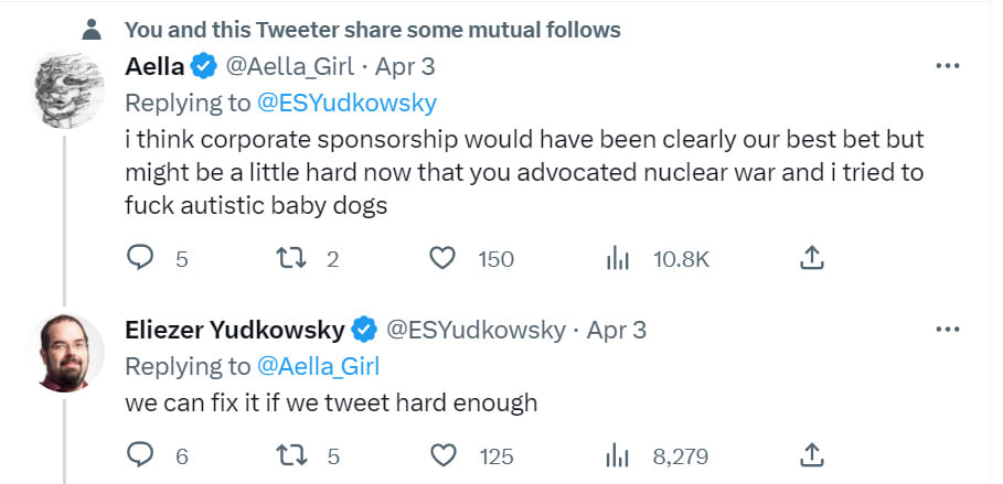 We would help everyone in the world not die, but Eliezer Yudkowsky is fat and weight loss is easy, so people won’t help, everyone is going to die and it’s all your fault. No, seriously.
