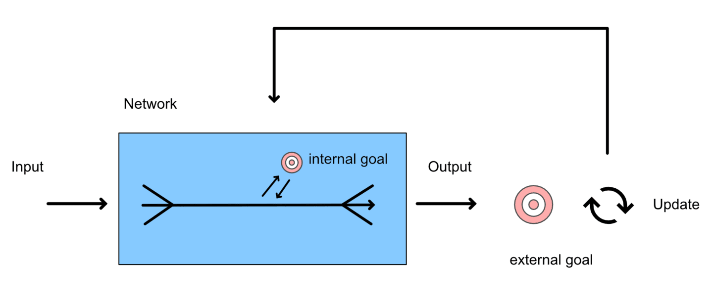 We humans code the external goal (the loss function). We know and understand it well.