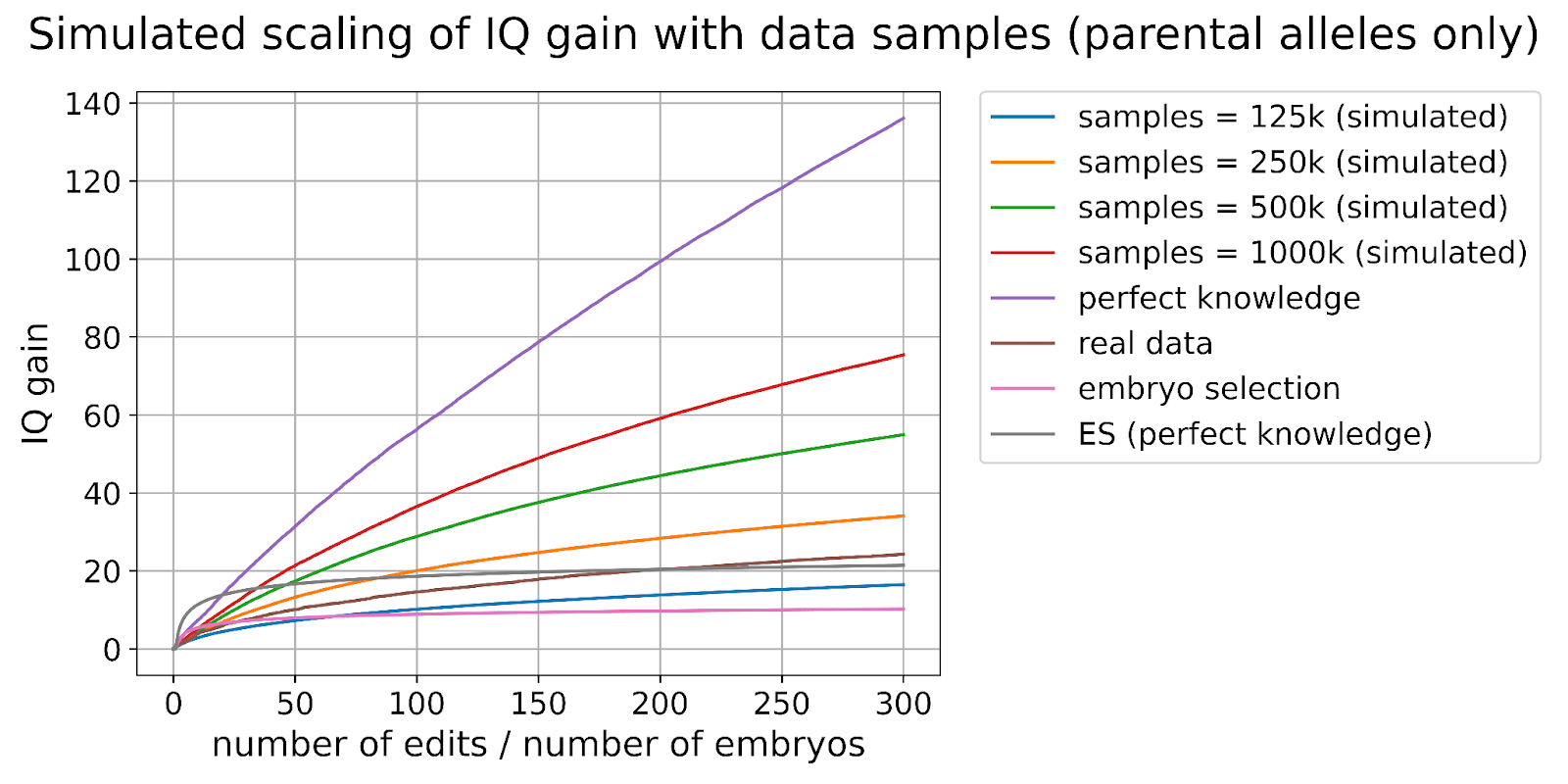 One thing we didn’t mention in the post is what could be done with gene editing if we JUST restrict ourselves to editing in variants that are present in one of the two parents.