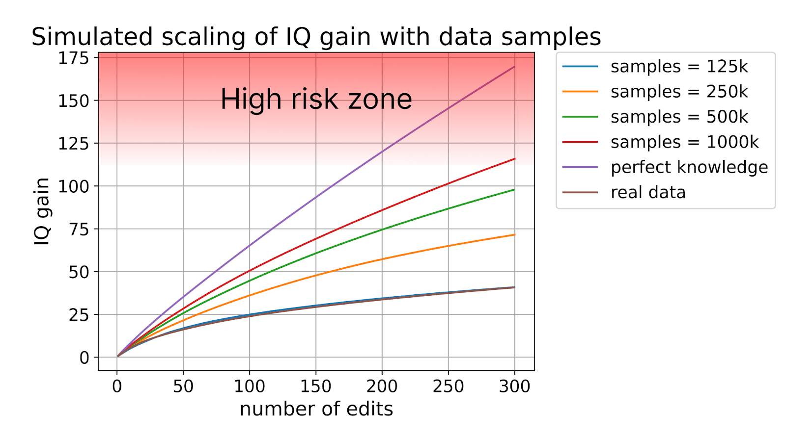 These graphs are constructed in basically the simplest possible way, by using a single GWAS. It's very likely that by the time we are ready to do actual human editing we will be able to do better than the graphs suggest.