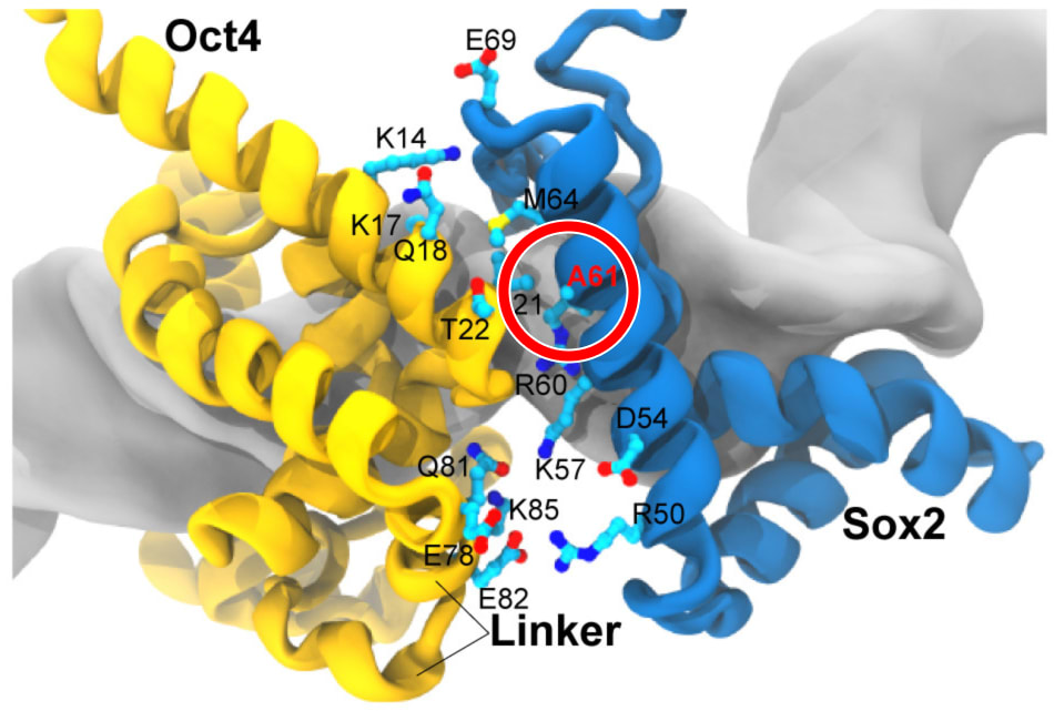 Sox2 and Oct4 are two such “helper proteins”. They’re crucial because they bind directly to DNA, which means the RNA transcriptase complex can’t even START forming unless Sox2 or Oct4 or both start the process off by sticking to DNA in the right spots.